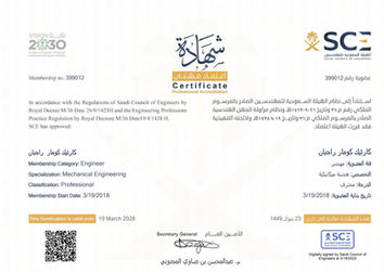 Member in Saudi Council of Engineers (Mechanical Engineering Specialization with Professional Classification)